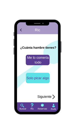 Ric te hará una serie de preguntas e irá filtrando para mostrarte al final una lista con posibles restaurantes que te puedan gustar.